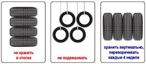 - Не допускается содержание колес в сборе или шин отдельно на открытых пространствах, балконе, в сыром подвале, продуваемом чердаке под навесом и т.п. Колеса необходимо хранить в сухом прохладном помещении.